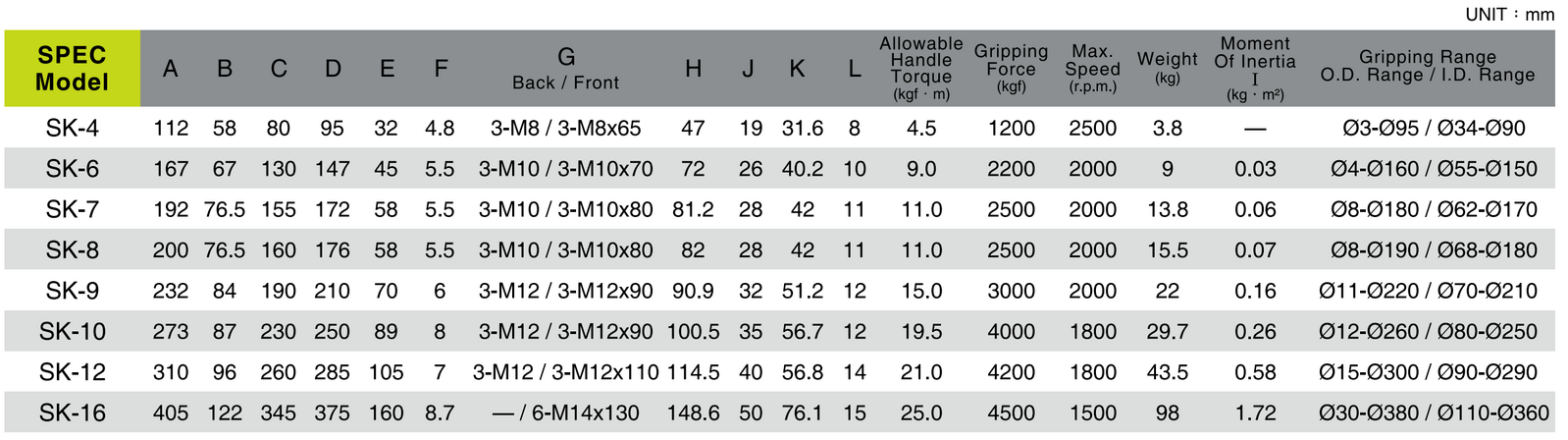 • Gripping Accuracy: 0.03mm (0.0012”) T.I.R